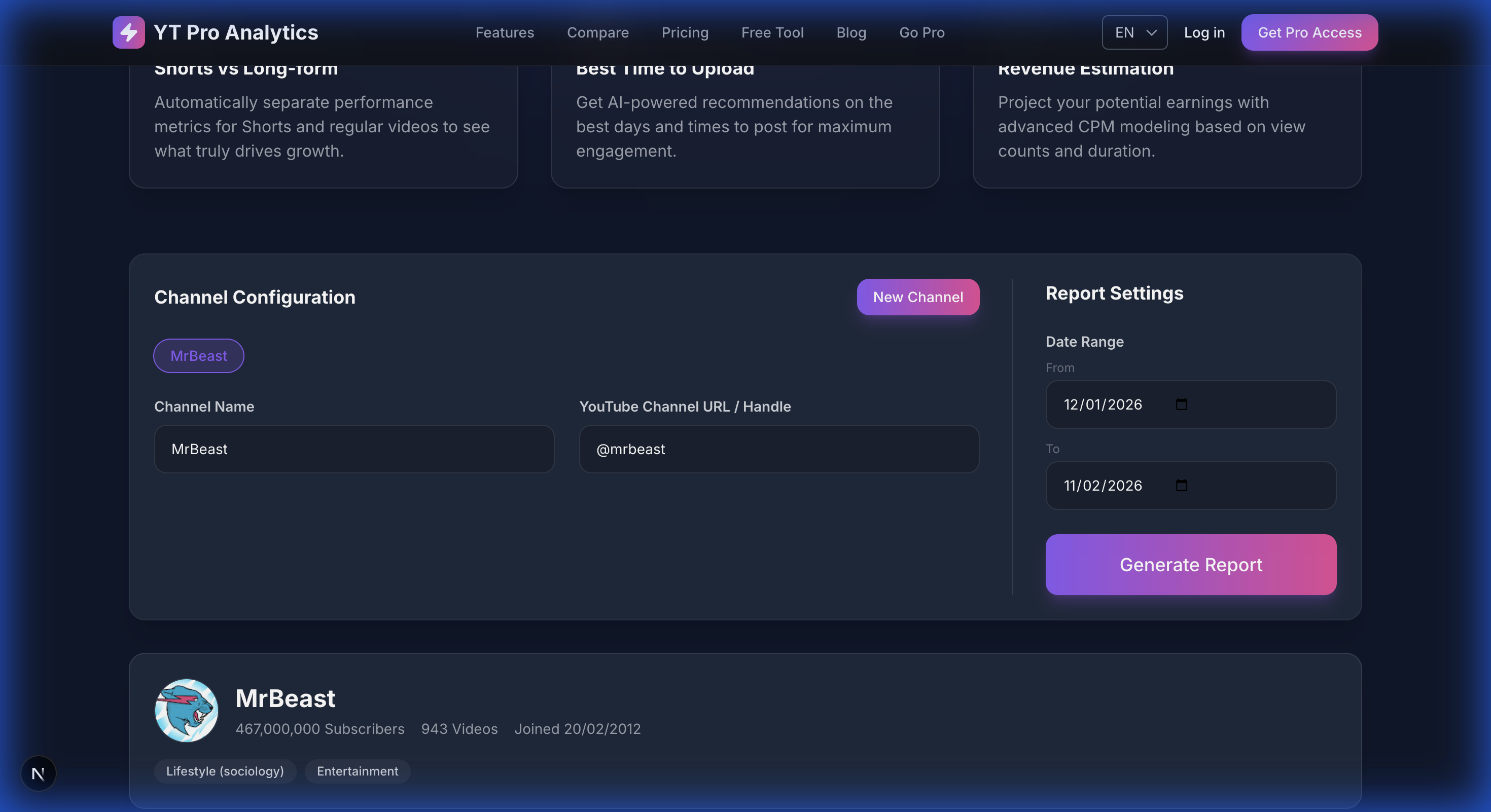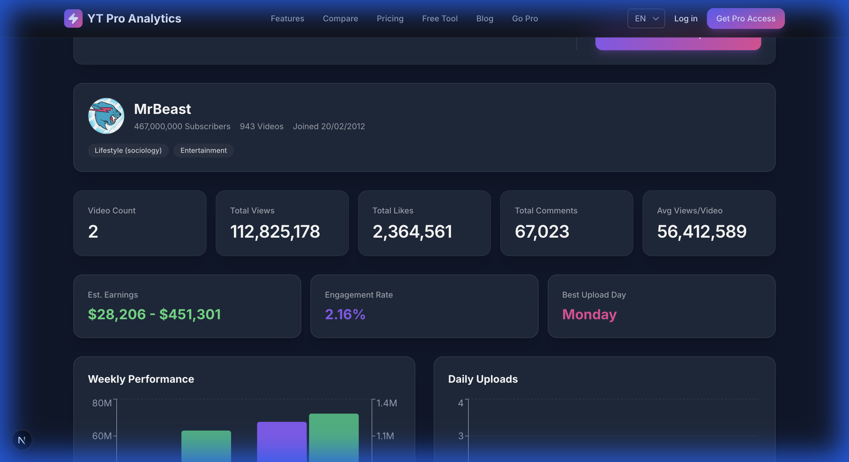 - ✓Engagement Rate Calculation (Likes + Comments / Views)